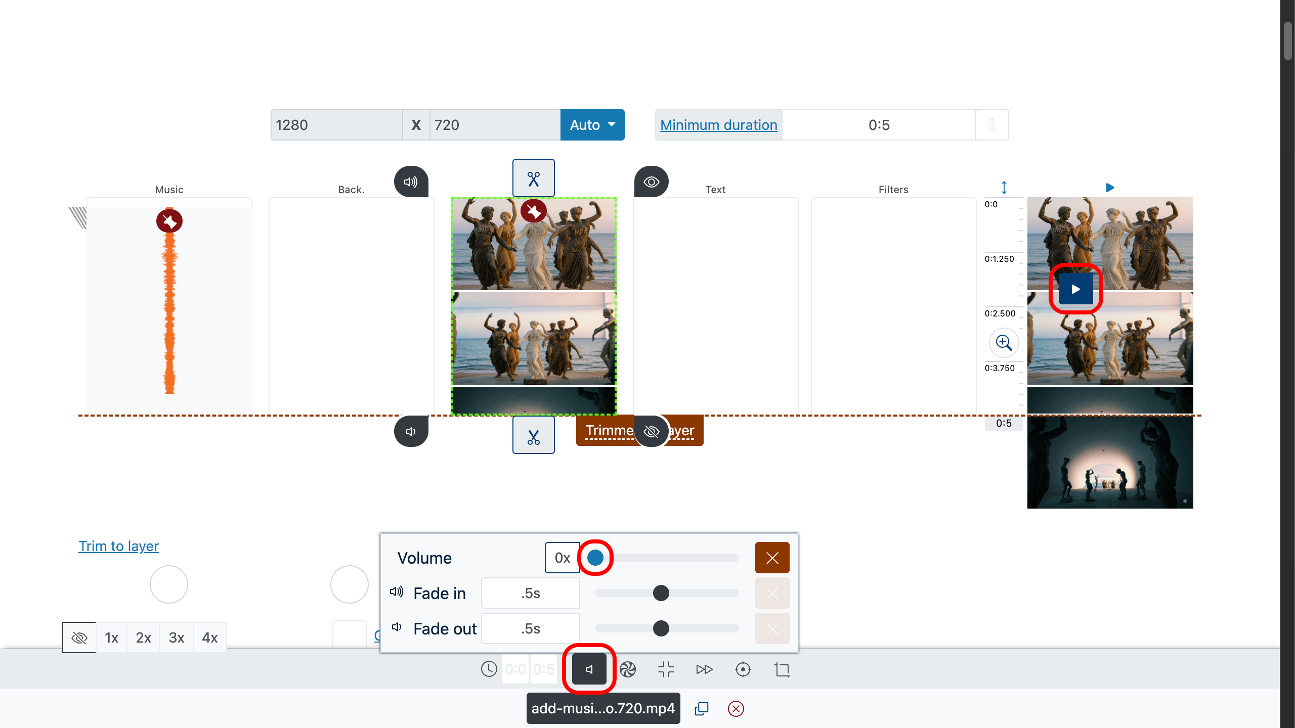 - الموسيقى كخلفية: خفّض مستوى مسار الموسيقى من لوحة الإعدادات السفلى.
