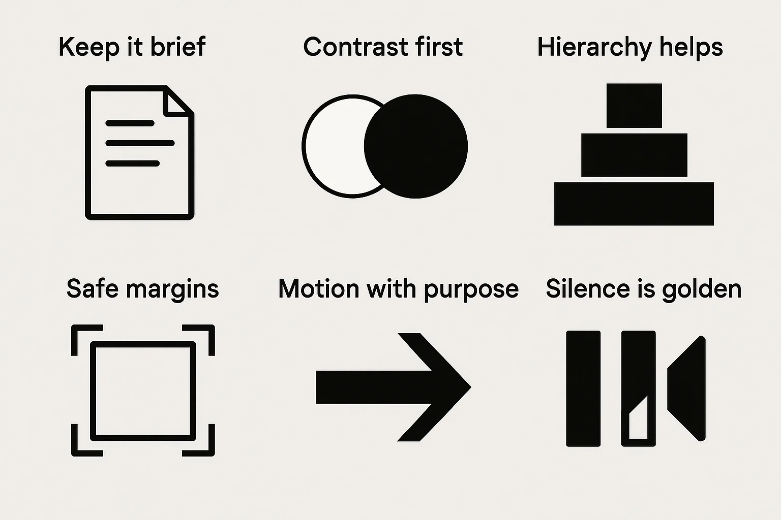 - اللون وقابلية القراءة. استخدم لون تعبئة صلبًا أو لوحة خلفية شبه شفافة إذا كانت اللقطات مزدحمة. القابلية للقراءة قبل البطولات.